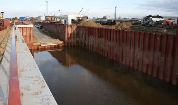 Комплекс работ по устройству шпунтового ограждения стартового котлована с применением вибропогружения и шпунта Ларсена, выполненный специалистами "АрктикГидроСтрой"